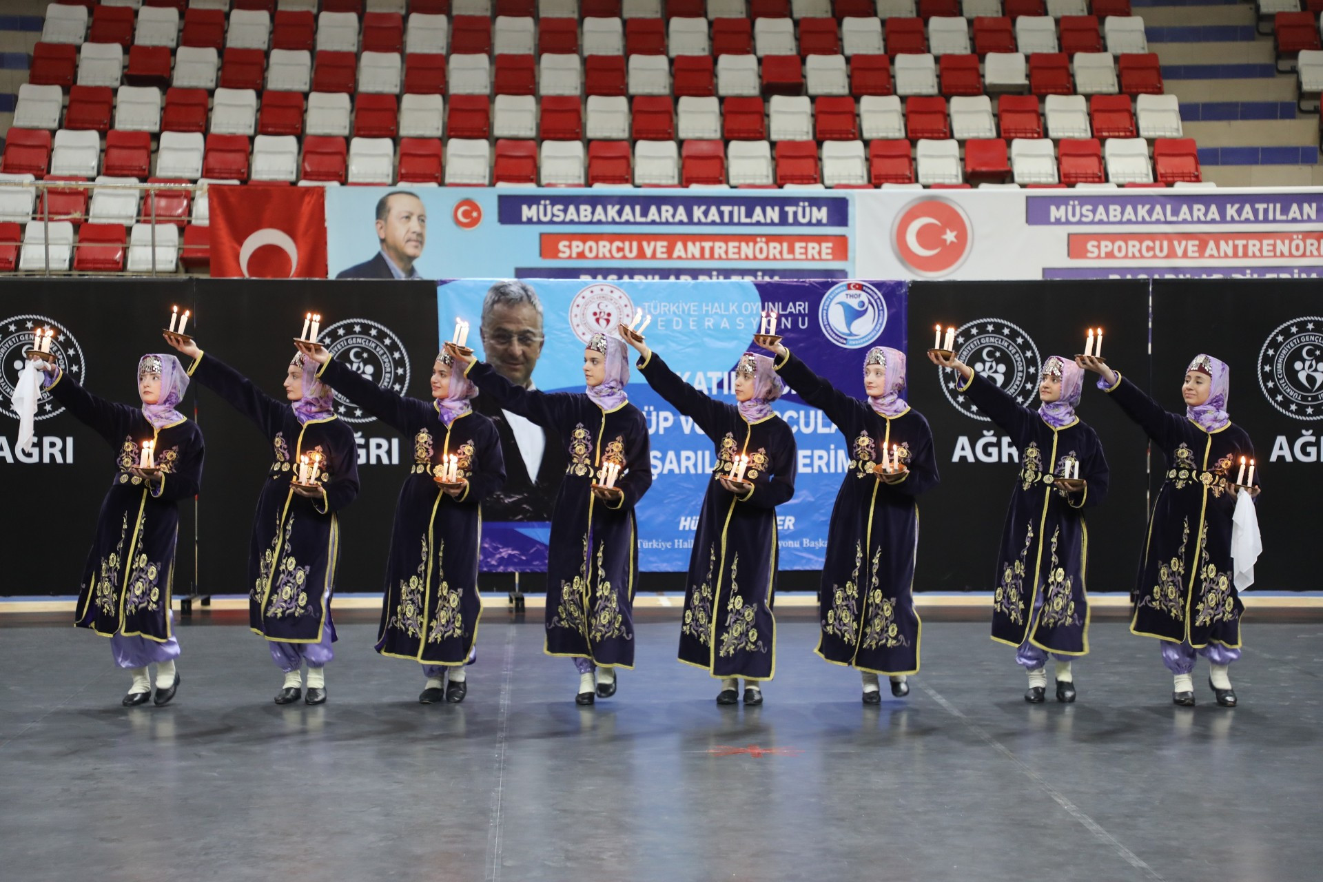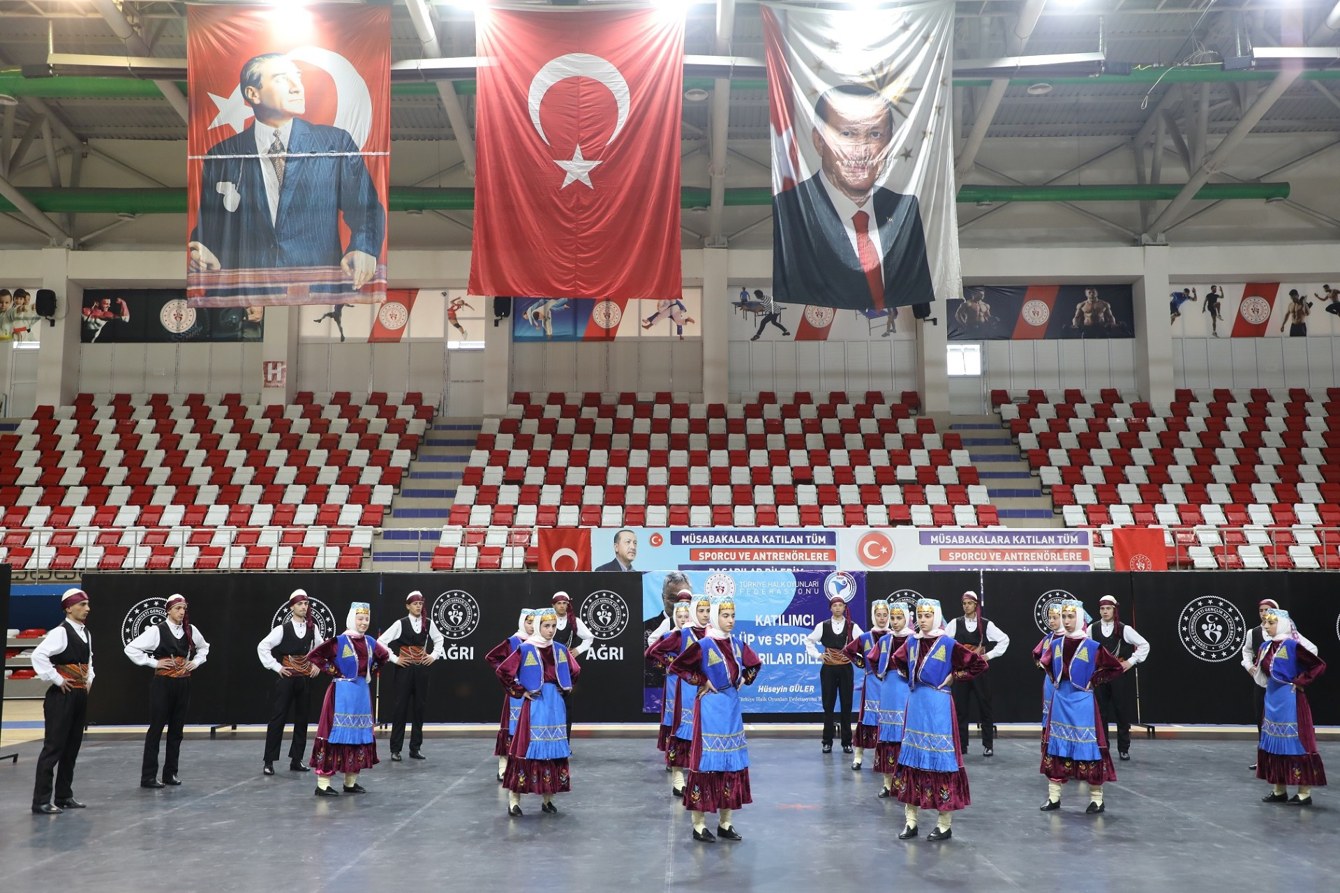 Gençlik ve Spor Bakanlığı'nın okul sporları takvimi kapsamında düzenlenen Halk Oyunları Gençler Kategorisi Doğu Anadolu Grup Yarışmaları, 11-12 Nisan 2026 tarihlerinde Ağrı’da gerçekleştirildi. Ağrı Merkez Spor Salonunda düzenlenen organizasyonda, yüzlerce sporcu yöresel ezgiler ve figürlerle izleyenleri büyüledi.