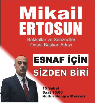 Esnaf camiasında karşılığı olan ve hizmetleriyle takdir toplayan Mikail Ertosun’un, yaklaşan seçimlerde güçlü adaylardan biri olduğu belirtiliyor.