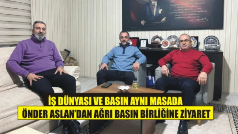 Ağrı’nın sevilen iş insanlarından Önder Aslan, Ağrı Basın Birliği’ni ziyaret etti. Ziyarette Öner Aslan’ı Basın Birliği Başkanı Nuri Bayram ve Başkan Yardımcısı Yılmaz Daş karşıladı.